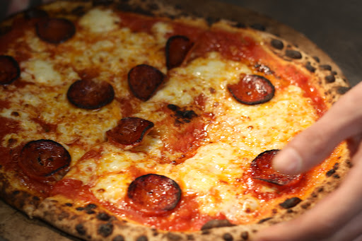 1- The dough ( charred or not ) are the edges of the dough fluffy and airy? That can perfectly be achieved by stretching the dough by hand using the right technique.. and Napoli style has be thin but soft not crispy (4/5) . Perfectly soft and thin, the charring is there but the stretching of the pizza to create the rim was not done perfectly. Some parts were uneven.