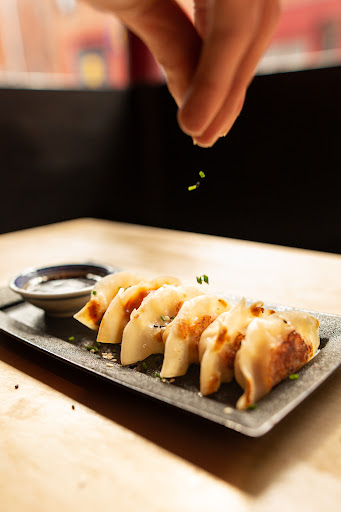 The meat of the gyoza we ordered was not pork but minced bacon with added cooked ham. We were brought 10 as an apology since the girl at the counter didn't understand that we had ordered 6 and not 9 pieces. Unfortunately we left them because they were quite inedible as they were dry.